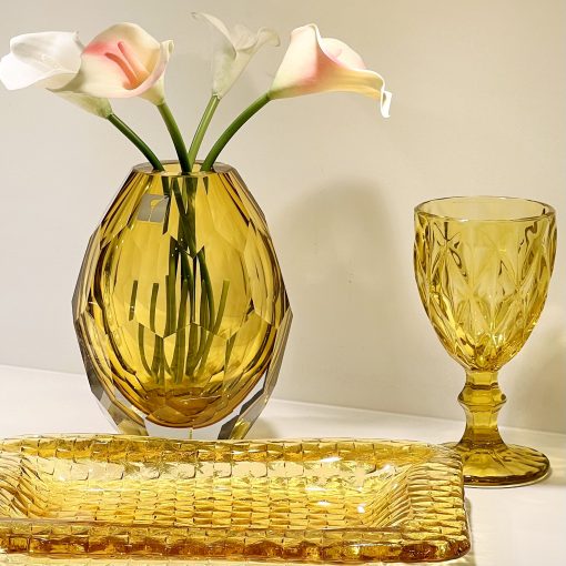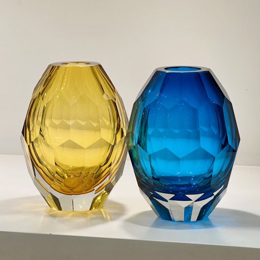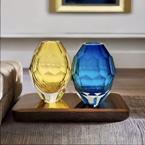 گلدانهای مدل الماسی از کریستال ۱۰درصد تولید شده و بدنه فوقالعاده شفاف و زیباتری نسبت به کلدانها بلوری را دارد